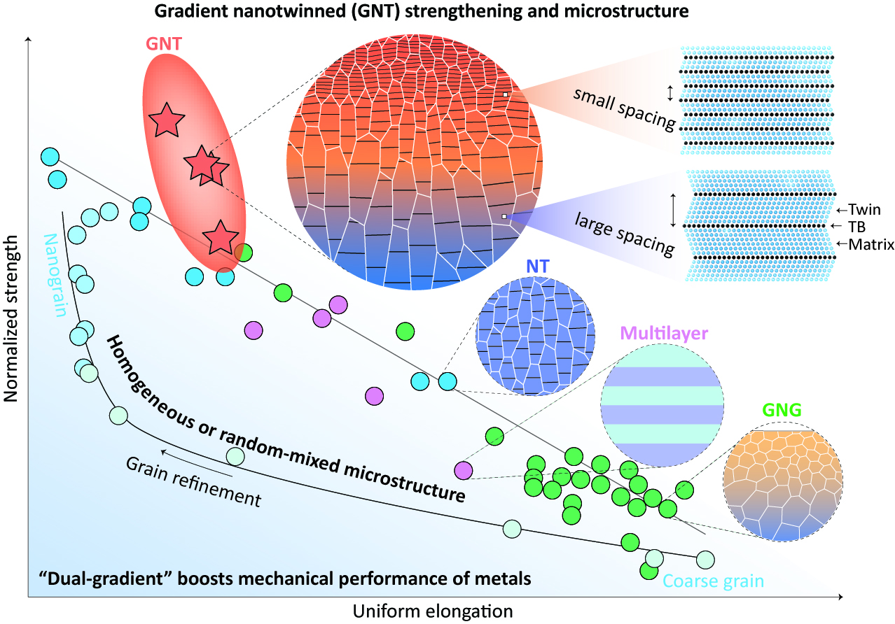 近年来,微观结构梯度的概念被越来越多地应用于工程材料中。鉴于其独特的变形机制,梯度结构材料普遍表现出较好的强度、硬度、加工硬化及抗疲劳性能等。但如何理解结构梯度对力学性能的影响规律......
