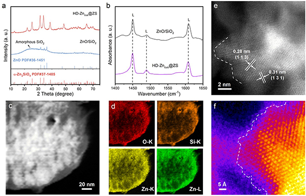 亚纳米尺度下原子级分散的金属活性中心通常具有较强的C-H键活化能力,但由于其具有高表面能和热力学不稳定性,在烷烃脱氢等高温催化反应中较易烧结形成较大的纳米颗粒,从而降低催化性能。因此开发热稳定性高的烷烃脱氢催化材料是烷烃脱氢领域的一个研究焦点。最近,沈阳材料科学国家研究中心刘洪阳研究员、刁江勇副研究员、特别研究助理王琳琳博士与王晓辉研究员、北京大学马丁教授、香港科技大学王宁教授、中科院煤化所温晓东教授等团队合作,通过调控硅酸锌材料的合成方法,成功构建了表面具有高密度配位不饱和结构的Zn催化剂(HD-Zncus@ZS),该催化剂在高温乙苯直接脱氢反应中表现出较高的脱氢活性、结构稳定性和优异的可循环性,为设计新型高温脱氢催化材料提供了新的思路。近日,该成果以“High-Density Coordinatively Unsaturated Zn Catalyst for Efficient Alkane Dehydrogenation”为题发表在《美国化学会志》(J. Am. Chem. Soc.) 期刊上。https://pubs.acs.org/doi/10.1021/jacs.3c06311