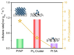 丁烷直接脱氢是工业催化领域生产丁烯的重要过程之一。其中该过程的副反应包括积炭、氢解和裂化是结构敏感性反应,通常倾向于发生在平均Pt-Pt配位数较大的Pt纳米颗粒上。目前,抑制该过程副反应和提高催化性能的理想方案是降低Pt纳米颗粒的尺寸。
