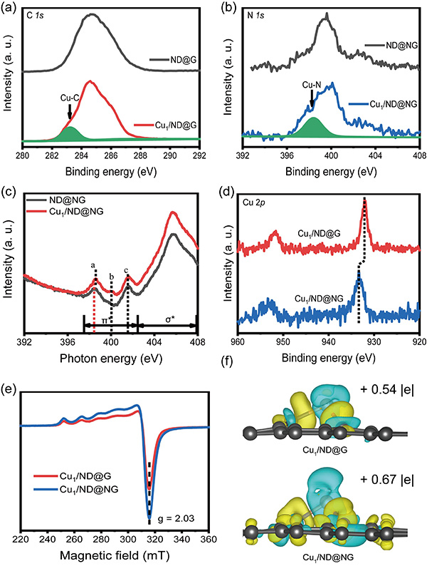 图2原子级分散Cu催化剂不同配位环境(Cu-C、Cu-N)的电子结构表征结果
