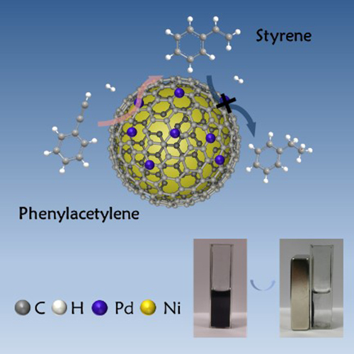 图4. 磁可分单原子催化剂Pd1/Ni@G苯乙炔选择性加氢示意图。
