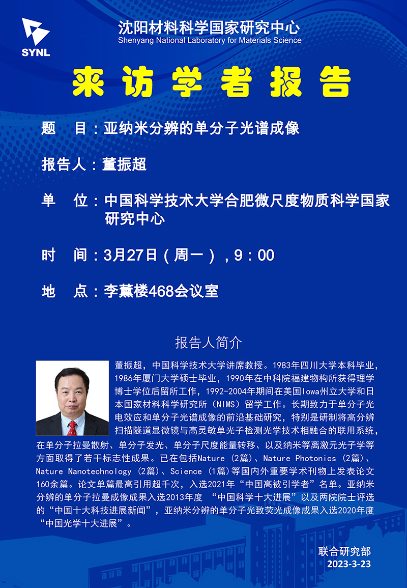【来访学者报告】亚纳米分辨的单分子光谱成像